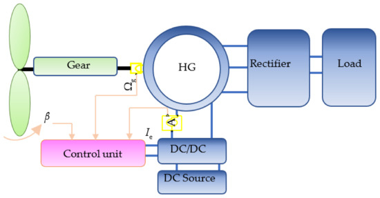 This study concerns an off-grid WECS connected to a resistance, as shown in Figure 1. The HG is connected to the resistance through a rectifier, controlled by a DC/DC converter, and driven by a horizontal axis wind turbine.