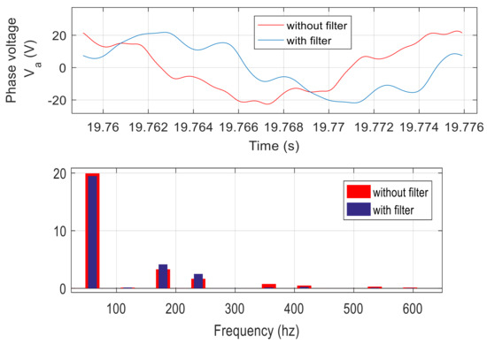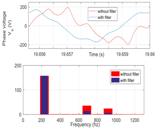 To improve system stability, the passive filtering wad proposed in [22,23,24]. Filtering involves placing a low-value impedance around the frequency that needs to be filtered, which is still significant compared to the fundamental frequency of operation. Active filters and passive filters are the two types of filters that are commonly used. In this study, we focused on the second option because it does not require any additional energy source. The goal of this research is to create a low-cost and efficient solution. This technology is particularly ideal for isolated wind energy applications. Adopting an external energy source would greatly increase the system’s cost and complexity, making it unsuitable for usage in the field. As a result, adopting passive filters is a cost-effective way to provide harmonic filtering.