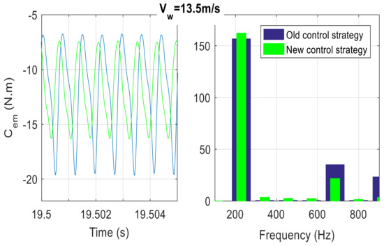 Shape of electromagnetic torque and its FFT analysis for vw = 13.5 m/s.