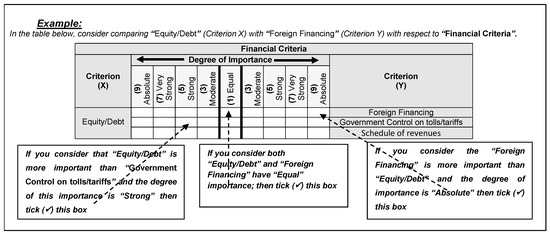 Questionnaire surveys were then created to specify the level of relative importance of the selection criteria of private partners. In this regard, the fuzzy analytical network process is exploited in this research study to interpret relative importance priorities of selection criteria of private partners. Classical ANP and their crisp values are incapable of addressing inherent uncertainties and ambiguities accompanied with human cognition. Hence, FANP is leveraged herein to resolve intrinsic vagueness and imprecision associated with experts’ subjective judgements [76,77,78]. Although analytical hierarchy process is widely used to deal with multi-criteria decision-making problems in real circumstances [79,80,81], it fails to provide satisfactory results in situations that need modelling interrelations and interactions between selection criteria being considered. Additionally, ANP is advised over other methods like full consistency method, best–worst method and level-based weighted assessment in situations that necessitate structured and interdependency-based modeling of complex problems [82,83]. To this end, FANP is utilized to accommodate interdependencies and influences between PPP selection criteria [84,85,86,87]. Furthermore, FANP was successfully and broadly implemented in diverse engineering-related applications. These comprised landfill site location [88], sustainability assessment of textile wastewater techniques [89], prioritization of green building materials [90] and sorting of cyclone readiness activities [91].