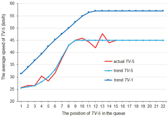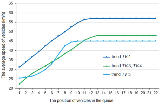 In the second approach, let us consider the most general situation, when the queue consists of several vehicles from various groups: the third, fourth, or fifth.