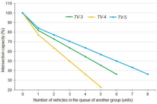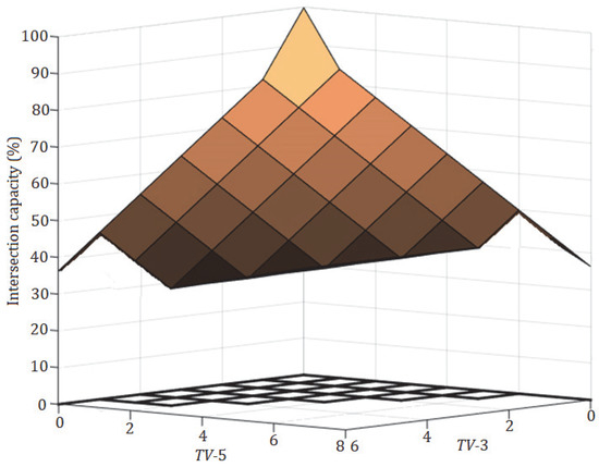 Traffic capacity (TC) is an essential performance indicator of a signal-controlled intersection [3,4,5]. The TC of intersections is critical for evaluating the performance of the road network in general. Many methods have been proposed for assessing and measuring the TC of signal-controlled intersections and many models for optimizing traffic at intersections have been developed [6,7,8,9]. However, most studies are based on the assumption that the traffic flow is homogeneous (all vehicles are standard) and are accepted for calculations according to the Highway Capacity Manual (HCM) as a passenger car equivalent (PCE) [10].