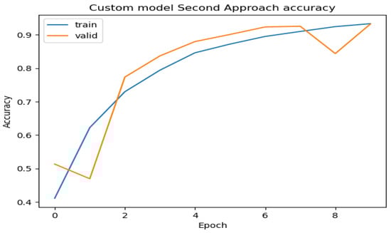 We first evaluated the performance of the developed CNN without taking into account the HHO algorithm using a balanced dataset (named the first model) and an unbalanced dataset (named the second model). The data were divided into three parts: training, validation, and testing. The ratio of each subset in the case of the unbalanced dataset was as follows: training (70%), validation (10%), and testing (20%). The corresponding number of images for each subset was: training (7210 images), validation (802 images), and testing (2003 images). On the other hand, for the balanced dataset, the data were also divided into training, validation, and testing subsets. The distribution ratio remained the same: training (70%), validation (10%), and testing (20%). The respective number of images for each subset was: training (33,793 images), validation (3755 images), and testing (9387 images).