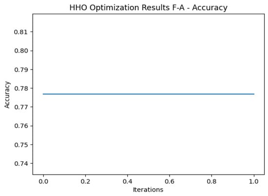 Moreover, the HHO algorithm updates the location of each Harris’s hawk by mimicking the hunting behavior using “soft besiege with progressive rapid dives” when the rabbit has “soft besiege” with escape still being possible. Furthermore, it will randomly apply “hard besiege with progressive rapid dives” when the prey is able to escape. As part of the optimization process, the function also records the convergence curve, the accuracy curve, and the loss curve of the best solution (lines 5–7). As soon as the HHO function has been completed, it returns the convergence curve and the best solution found by the HHO algorithm.