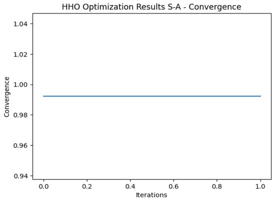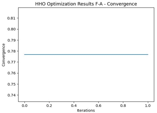 Convergence is an important criterion in the evaluation of optimization algorithms in order to determine the speed at which solutions are discovered. Slow convergent algorithms require more iterations to reach a satisfactory solution, whereas fast convergent algorithms can achieve good results in fewer iterations. Based on Figure 19, our HHO algorithm converged after undergoing multiple iterations, resulting in a solution of x = 0.99. In this solution, the gradient is almost zero, indicating that the objective function has nearly flattened out. The algorithm, thus, appears to have located a solution that is close to the optimal one, eliminating the need for further iterations. The algorithm has iteratively adjusted x = 0.77 for the imbalanced dataset (Figure 18), and at this point more adjustments or iterations may not be necessary to significantly improve the objective function’s value.