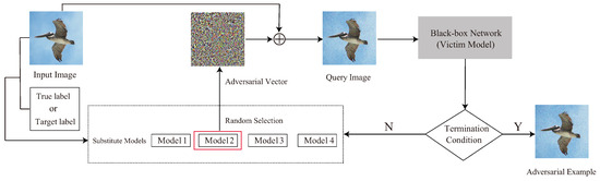 Unfortunately, the proposed attack method above may fail to find an adversarial sample if only a single surrogate model is used. This is because the success rate of the adversarial attack depends on the similarity between the substitute model and the victim model. Therefore, it is necessary to further develop an algorithm to successfully and quickly find adversarial examples.