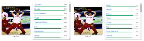 We conducted both and untargeted attacks against the Google Cloud Vision API. Figure 8 and Figure 9 show the classification results in a comparison of clean images and adversarial examples generated by 2 and 29 queries, respectively. In Figure 8, the original image contains concepts related to primates. After only two queries, the perturbed image is forced to be classified as ‘Felidae’. Note that ADDA successfully replaced the top-3 concepts with Felidae-related objects through an imperceptible change to the original image. Figure 9 shows that our attack produces a perturbation that is human-indistinguishable after only 29 queries, causing the model to ignore the existence of the player-related object and classify the image as the dancer-relevant object.