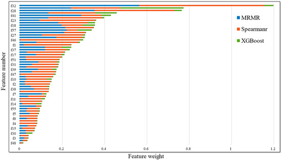 Step 2: Compute the weight vector for each feature separately using mRMR, Spearman’s rank correlation coefficient, and XGBoost feature importance.