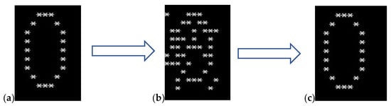 Typical errors of the sample letter «O»—from left to right—with errors 1, 2, and 3. Symbol * used for presentation of initial noised and recovery samples.