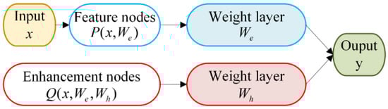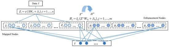 To better describe the stacked BLS, the BLS is simplified. The structure of Figure 1 can be described as Figure 2. Similarly, BLS includes n sets of mapped nodes and m sets of enhancement nodes, Equation (12) can be rewritten as