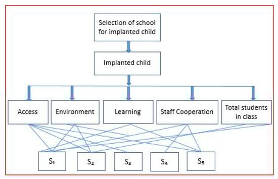 Scores of alternatives for the selection of best school for implanted child are shown in Figure 3.