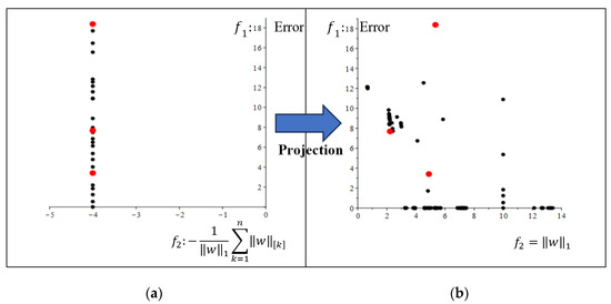 Although single-objective machine learning problems have been well studied [17,18,19,20,21,22,23], there are fewer studies on multi-objective machine learning problems. Multi-objective machine learning is an approach to determining an appropriate trade-off between generally conflicting objectives [24,25,26]. In multi-objective machine learning approaches, the main advantage is that you can obtain a deeper insight into the learning problem by analyzing the produced Pareto frontier [27,28,29,30,31,32,33,34,35,36,37,38,39,40,41]. In some multi-objective approaches, two objectives are simultaneously considered: minimizing the classification error and the norm of the weight vectors [42].