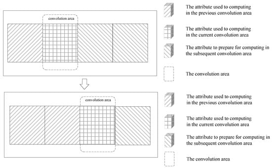Further analysis is conducted to determine whether any of the attributes that slide into the convolutional area already exist or not in the convolutional area at time t. If some attributes already exist in the convolution area at time t, they do not affect the result when they slide into the convolution window. These partially overlapping attributes, represented as , should be removed.