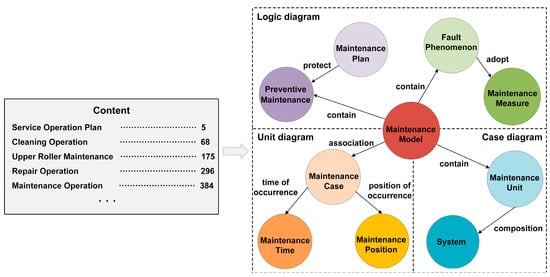 The explosive growth of equipment maintenance data has not only changed the norm for the research and analysis of maintenance but has also brought new opportunities and challenges to the way in which maintenance is carried out [1]. In the field of equipment maintenance, these two requirements place considerable workload and stress on the maintenance engineer. The first requires proper maintenance to optimize equipment performance during the safety period, while the second involves accurate repairs that speed up equipment restoration within a shorter time frame. In practice, this means that the maintainer must regularly verify the operation status of all parts of the device and carry out appropriate servicing to reduce the wear and tear of these components. In addition, the maintenance worker needs to be able to quickly determine the site of the fault and to repair it when the machine appears to be malfunctioning [2]. Obviously, the traditional approach to equipment maintenance still relies heavily on the knowledge and experience of maintainers and specialists in related fields [3,4,5], which requires them to repeatedly study, memorize and consult a great quantity of maintenance procedures and to repair manuals in a textual form [6,7]. On the one hand, this is a rather inefficient approach, which not only makes it easy to have inappropriate care and to miss the inspection of certain parts but also makes it difficult to share and transmit the experience of trouble-shooting [8], which leads to poor accuracy and standardization of machine maintenance; on the other hand, a large amount of first-hand knowledge is yet to be managed and utilized effectively, which limits knowledge dissemination and is a waste of data resources. For this reason, there is an urgent demand for a set of strong interpretive Artificial Intelligence technologies to improve the knowledge management of machine maintenance.