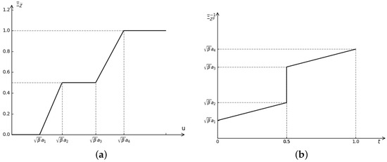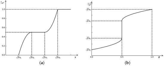 Depending on Definition 4, the credibility distribution (see Figure 3a) and its corresponding inverse function (see Figure 3b) could be described as