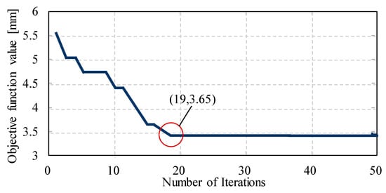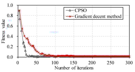 Figure 12 depicts the objective function value of CPSO at each iteration. It can be seen that the objective function reached the minimum value at 19 iterations. Finally, the optimal learning rate was 0.025, and the optimal number of hidden layers and hidden nodes were 3 and 6, respectively.