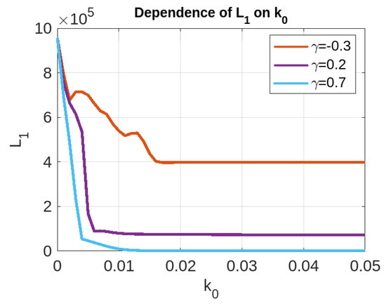 The average number of infected individuals decreases with the increase in (Figure 4) and stabilizes to a constant for sufficiently large values of this parameter. Indeed, a further increase in this parameter does not practically influence the number of vaccinated individuals, which reaches its maximum. Parameter characterizes the duration of vaccination. Under the increase in this parameter, the average number of infected decreases. If is sufficiently large, the epidemic outbreaks are completely suppressed.