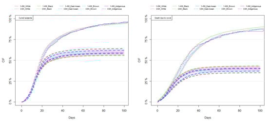 We applied the competing risk survival analyses described above for estimating the CIF of dying from COVID-19 and the CIF of dying from other causes in Brazilian subjects with COVID-19.