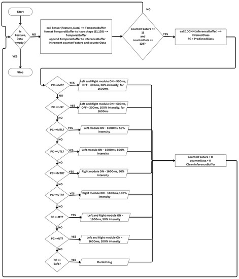 Flowchart: class inference and haptic feedback engine.