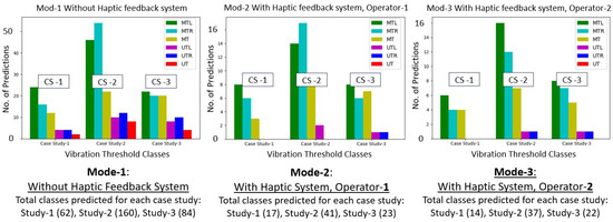 Threshold class predicted/haptic feedback summary: 3 case studies, 3 operation modes.