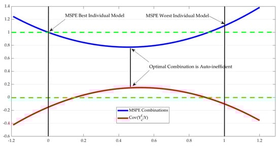 While it is clear that combination gains may exist in a number of applications, part of the literature analyzes the efficiency of some combination strategies. For instance, ref. [10] indicates that the regression approach is a combination scheme that leaves room for improvement due to the autocorrelation in the residuals that is inherent to this combination method. Refs. [10,26] also mention that the Bates and Granger approach is potentially inefficient due to the introduction of the constraint of the coefficients summing to unity. The extent to which these inefficiencies are indeed relevant requires a case-by-case analysis, yet it is our reading of the literature that the potential inefficiencies of forecast combinations are mostly overshadowed by the enthusiastic literature that mainly emphasizes the direct benefits of forecast combinations in boosting forecast accuracy.