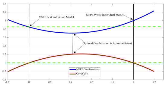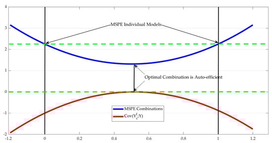We assume, without loss of generality, that the mean squared prediction errors () of forecast 2 are as good as those of forecast 1, which is to say that