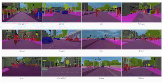 - Cordts, M.; Omran, M.; Ramos, S.; Rehfeld, T.; Enzweiler, M.; Benenson, R.; Franke, U.; Roth, S.; Schiele, B. The cityscapes dataset for semantic urban scene understanding. In Proceedings of the IEEE Conference on Computer Vision and Pattern Recognition, Las Vegas, NV, USA, 27–30 June 2016; pp. 3213–3223. [Google Scholar]