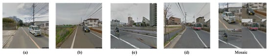 An interesting approach for data augmentation is the Mosaic method first proposed in YOLOv4 [62], the main idea of which is to randomly crop a small number (four in a typical implementation) of images and to stitch them onto one image as training data. This paper adopts the Mosaic data augmentation technique on the dataset TMS-Tokyo, while turning off this operation in a number (say, 15) of the last epochs of training to prevent the images generated by data enhancement from interfering with the real distribution of natural images. An instance of the use of Mosaic in TMS-Tokyo is illustrated in Figure 3.
