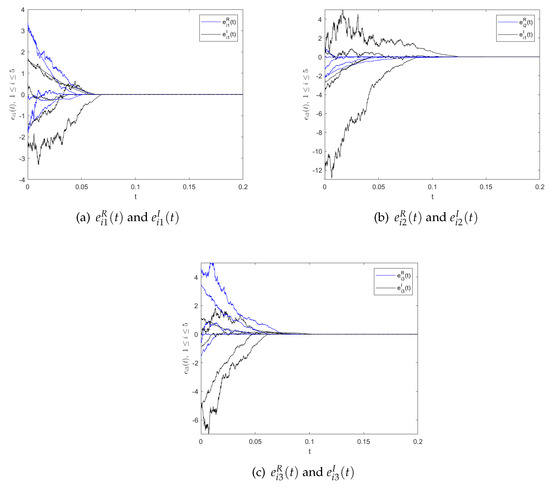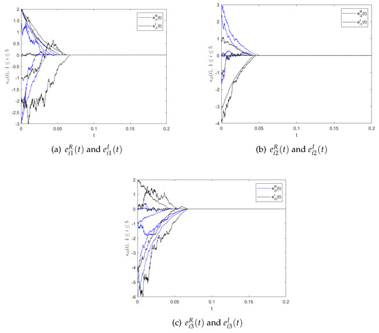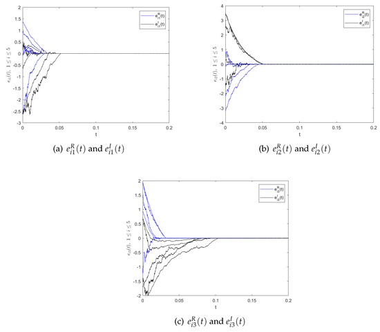 with initial condition , where , . Let , , , , , . Then the error system (3) can be separated into real and imaginary parts, as
