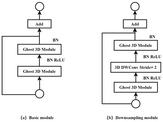 7], we replaced the core Ghost module of GHostNet with a 3D structure to obtain the 3D-GHostNet network because the core of reducing the number of parameters and floating-point calculation in its 3D-Ghost module is still to use depth-separable convolution. Therefore, 3D-GHostNet is classified into the lightweight methods of 3D depth-separable convolution, and the 3D-Ghost module is shown in