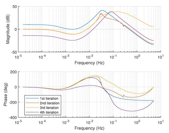 Figure 6 presents the examination of this requirement, where plots are for both the upper bound determined by W e and for the uncertain LTI closed loop with the μ -controller, where the uncertain element is randomly sampled 30 times.