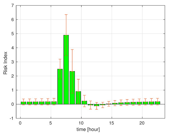 Figure 15. Glucose risk index calculated for each hour with ± 1 standard deviation confidence.