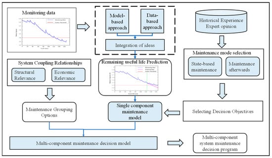 - Based on economic correlations within multi-component systems, component remaining useful life (RUL) predictions, and cost-based maintenance approaches, this study presents an integrated maintenance model that incorporates appropriate assumptions and provides a comprehensive analysis of the overall maintenance strategy. Additionally, we employ a particle-filter-based RUL prediction technique in this paper, which combines model and data-driven approaches to achieve enhanced prediction performance. This approach offers significant advantages over traditional model-based methods.