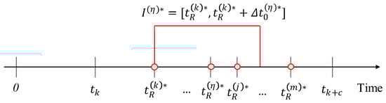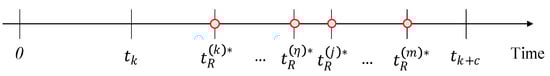 - Periodic preventive maintenance strategy, which is executed when based on the historical reliability data of components. Specifically, the average failure time of components is first obtained using the historical reliability data of multiple components, and then periodic preventive maintenance with a cost of is executed at time as follows:where denotes taking the smallest integer greater than or equal to the real number x.
