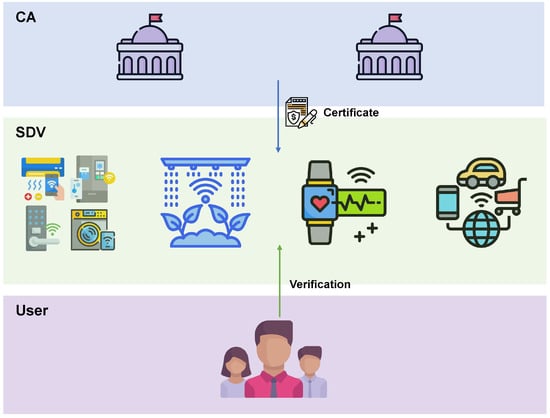 - User: The user is the one who enjoys the services of the IoT. At the same time, the user verifies the certificates of SDVs before using devices.