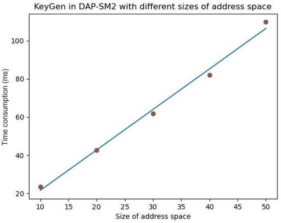 Time consumption of KeyGen in Dap-SM2 with different sizes of address space.