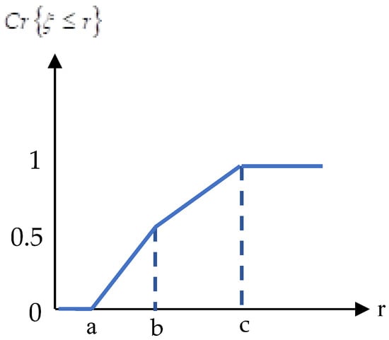 Let be a triangular fuzzy variable with a member-ship function provided by Equation (4) (see Figure 1), and let be a fuzzy event with a credibility determined by Equation (5):