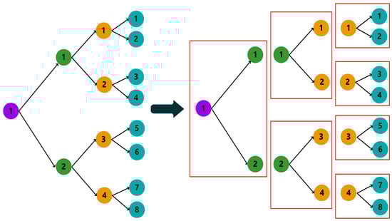 Scenarios are commonly used to simulate random parameters in multi-period stochastic programming models. A tree structure is used to build scenarios. The model is based on an extension of the decision space that takes into account the scenario tree’s conditional character. Each node makes conditional judgments based on the modeling restrictions (see Figure 6). The number of choice factors and restrictions in the scenario tree may expand exponentially to guarantee that the generated representative set of scenarios adequately covers the set of possibilities [13]. A scenario tree model is what this model is termed.