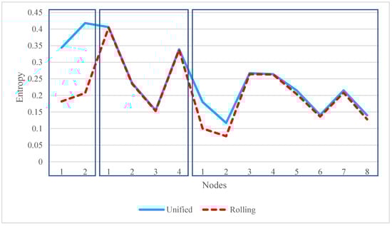 This study considers a time-consistent multi-period rolling portfolio optimization issue in the context of a fuzzy situation. Rolling optimization with a risk aversion component attempts to separate the time periods and psychological effects of one’s investment in a mathematical model. Furthermore, a resilient portfolio selection may be attained by taking into account fuzzy scenarios. Credibilistic entropy of fuzzy returns is used to measure portfolio risk because entropy, as a measure of risk, is not dependent on any certain sort of symmetric membership function of stock returns and may be estimated using nonmetric data. Mathematical modeling is performed to compare the Rolling Model (RM) and the Unified Model (UM). Two empirical studies from the Tehran stock market (10 stocks from April 2017 to April 2019) and the global stock market (20 stocks from April 2021 to April 2023) are utilized to illustrate the applicability of the suggested strategy. The findings reveal that RM can limit the risk of the portfolio at each time, but the portfolio’s return is smaller than that of UM. Furthermore, the suggested models outperform the standard deterministic model.