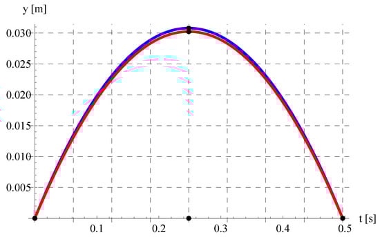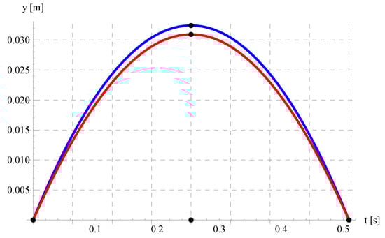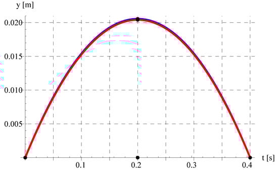 The vertical displacement y can be easily obtained by substituting into Equation (21); hence,