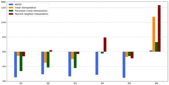 To verify the optimization performance of ASIDS, we compared it with three other methods: piecewise linear interpolation, linear extrapolation, and nearest neighbor interpolation. Specifically, we let and for ASIDS. Based on the given dataset, we used the samples generated by ASIDS as interpolation points to calculate the output values of linear extrapolation and nearest neighbor interpolation. Moreover, by letting and for ASIDS, we can regard it as piecewise linear interpolation. The experimental results show that ASIDS has the smallest MSE among all methods for each dataset (Figure 7).