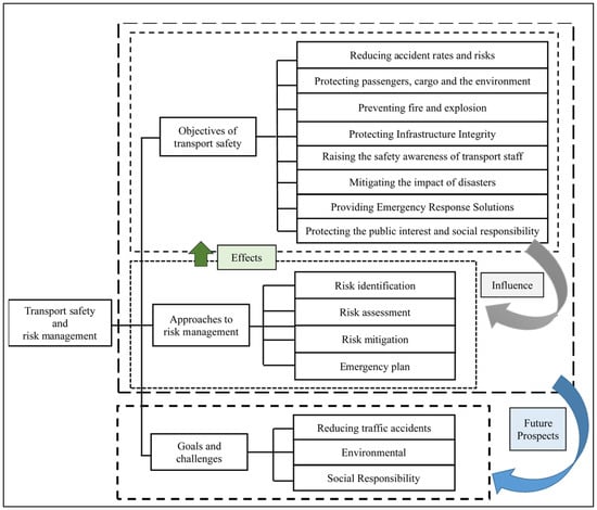Risk management is a significant process in logistics and supply-chain management, which can be simply categorized into the following three categories [19,20,21]: (1) Risk identification: to identify the risk factors that may pose a threat or cause damage to the transportation process. (2) Risk assessment: to determine the possibility of a risk occurring and the extent of its impact. (3) Risk control and monitoring: to take measures to address and mitigate identified risks, to track changes in risks on an ongoing basis, and to implement control measures. In brief, risk management aims at identifying, assessing, and controlling risks that may adversely affect cold-chain transportation in order to ensure the safety and reliability of the transportation process. This involves the main steps of risk identification, assessment, control, and monitoring, to ensure an effective response to the risks to which different transport carriers may be exposed. The relationship between transportation security and risk management is that risk management is a systematic approach and measures are taken to achieve the goal of transportation security. Risk management methods are aimed at identifying, assessing, and mitigating the various potential risks associated with transportation in order to ensure the safety of people, goods, and the environment during transportation activities. Transportation safety requires effective risk management to improve the overall safety of the transportation system by preventing accidents, mitigating the effects of disasters, and so on. Thus, transportation safety and risk management are mutually reinforcing, and the safety and reliability of transportation activities can be promoted and maintained with a rational risk management approach [19,20,21]. In summary, this study integrates scholars’ views on the relationship between transportation safety and risk management by drawing a mind map (Figure 1), which clearly demonstrates the interrelationship between transportation safety and risk management as well as the connotations of related concepts. (1) Relationship: The relationship between transportation safety and risk management is described. Risk management is emphasized as a way to achieve transport security by linking transport security objectives, risk management approaches, and cross-influencing impacts, while the interplay between the two is highlighted. (2) Transport safety objectives: The objectives of transport safety cover all aspects of transportation, including the reduction in the rate of traffic accidents, the protection of passengers and cargo, and environmental and social responsibility. These objectives are the core elements to be pursued in transportation activities. (3) Risk management methodology: Risk management is a series of strategies to achieve transportation safety objectives, including risk identification, risk assessment, risk mitigation, and contingency planning. (4) Cross-influence: The interplay between transportation safety and risk management is emphasized. Transportation safety can be enhanced by adopting effective risk management methods, while the achievement of transportation safety is one of the objectives of risk management.