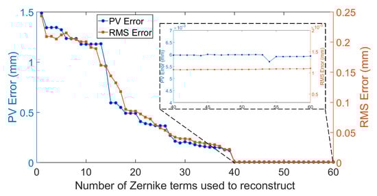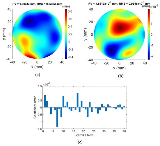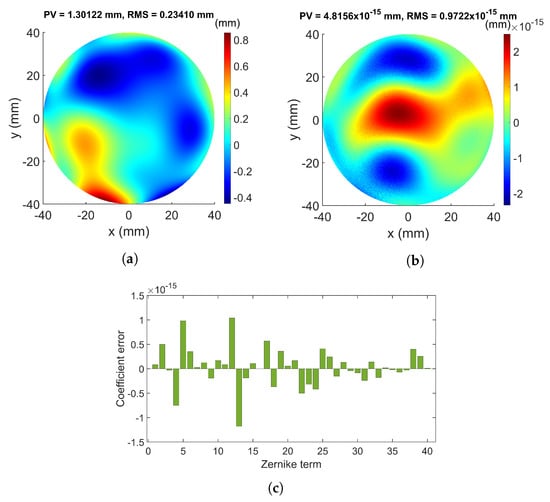 - Dai, F.; Zheng, Y.; Bu, Y.; Wang, X. Zernike polynomials as a basis for modal fitting in lateral shearing interferometry: A discrete domain matrix transformation method. Appl. Opt. 2016, 55, 5884–5891. [Google Scholar] [CrossRef]