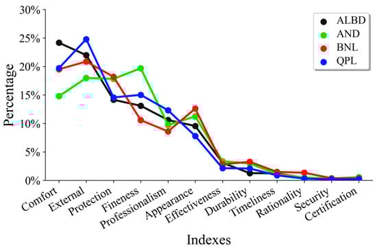 25], including Comfort, Certification, External, Fineness, Mall, Appearance, and Protection. Mall is specific to offline shopping. As consumption patterns change, more and more consumers tend to buy clothes online. The share of online clothing consumption has exceeded that of offline consumption [
