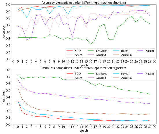 (2) The results of the hyper-parameter study showed that the highest recognition accuracy of our method can reach 98.45% and the training loss can be reduced to 0.04. The best number of iterations is 193, the best batch size is 32, and SGD is the best optimization function.