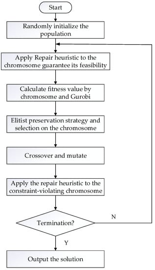 - For the model characteristics, this work develops an improved genetic algorithm combined with a heuristic algorithm to increase the efficiency of solving large-scale problems. A specific heuristic repair strategy is designed to ensure the feasibility of the solution.