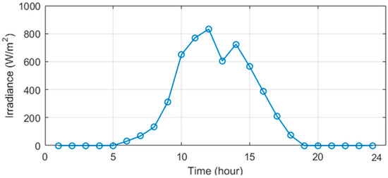 where SI is radiation radiated to the PV panel (W/m2), denotes PV rated power, SIref is standard irradiance (1000 W/m2), is the coefficient of the PV temperature (−0.00371/°C), Temref is the temperature of the PV in the standard condition and Temc denotes the temperature of the PV.