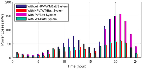 - In this study, an optimal multi-objective scheduling framework is implemented for different configurations of the HS, including the HPV/WT/Batt, PV/Batt, and WT/Batt system, in the network to minimize the energy losses, voltage profile, and the HS energy generation cost, and also to enhance its reliability.