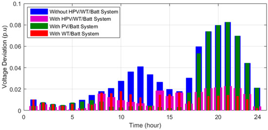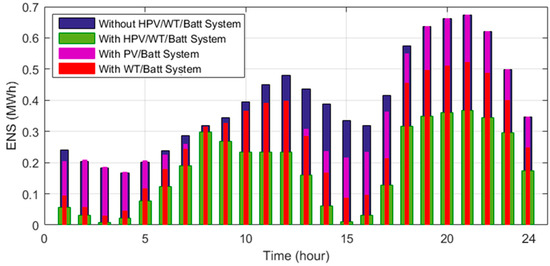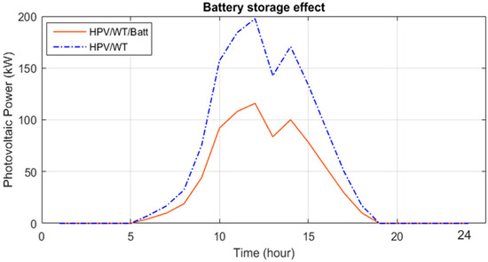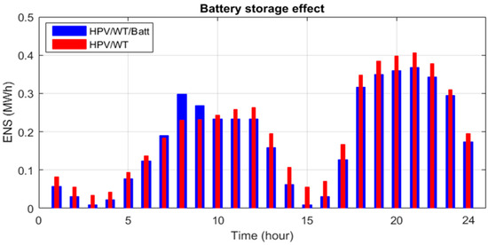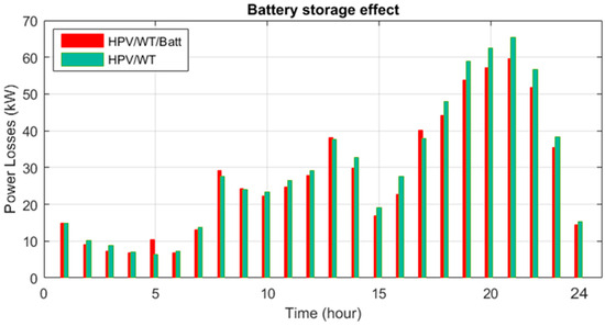 - The results showed that integrating the battery storage with the HPV/WT system scheduling decreases the energy losses, ENS, voltage deviations, and also HPV/WT/Batt cost by 0.26%, 10.26%, 0.03%, and 34.62%, respectively, compared to the absence of the storage system.