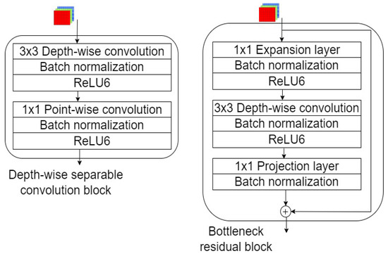 where x is the input. One building block structure of MobileNet V1 and V2 are illustrated in Figure 2.